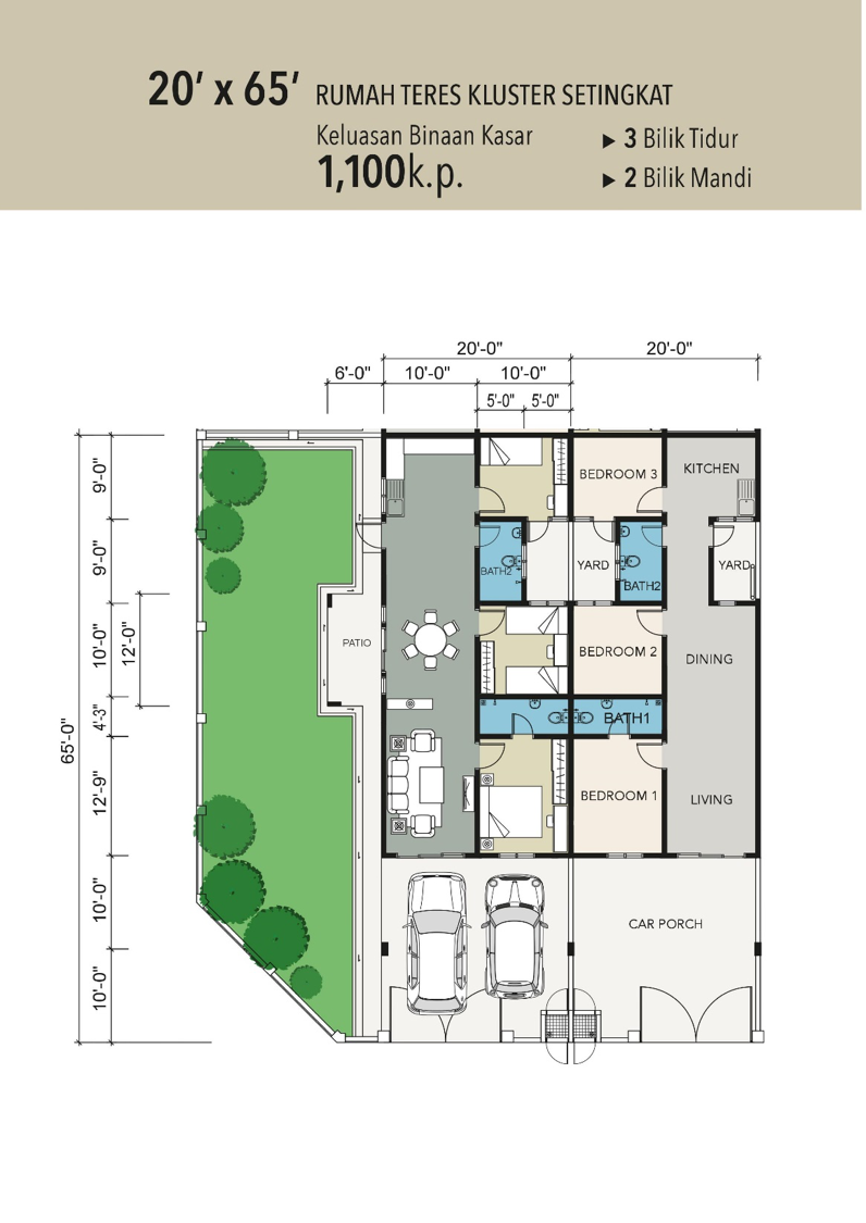 Taman Kinding Flora – 20×65 Single Storey Cluster Terrace