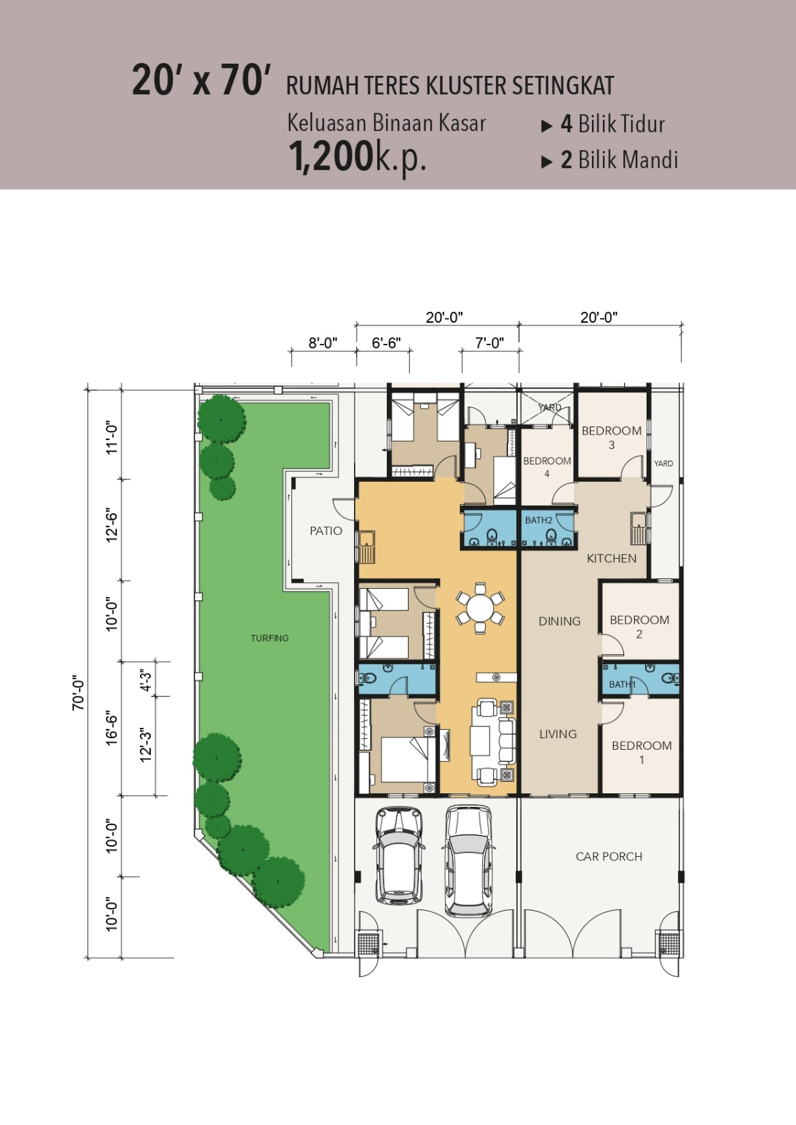 Taman Kinding Flora – 20×70 Single Storey Cluster Terrace
